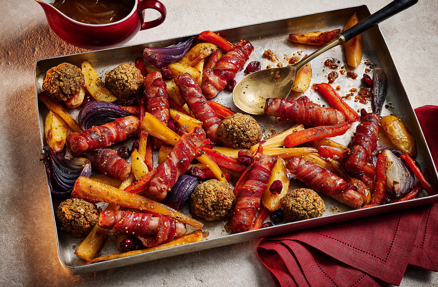 Inspired by the much-loved Christmas dinner trimming, Jade Greenhalgh's sticky-sweet sausage traybake makes a lovely family meal or easy alternative to Sunday lunch. With all the festive feels, it's great for the busy run up to Christmas, plus you can make-and-freeze ahead!