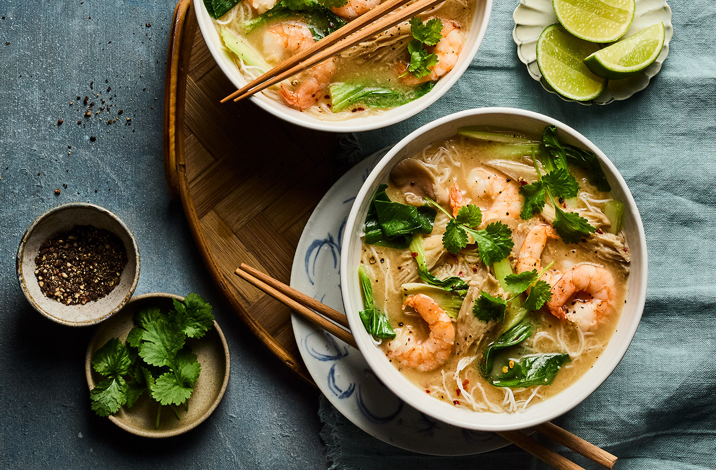 Made in just 15 minutes, this noodle soup is as flavour-packed as a broth that’s cooked for hours, thanks to the umami-rich base of miso, soy sauce and peanut butter. Miso, a paste made of fermented soy beans, has an intensely savoury flavour that works brilliantly in marinades, dressings and even baking.