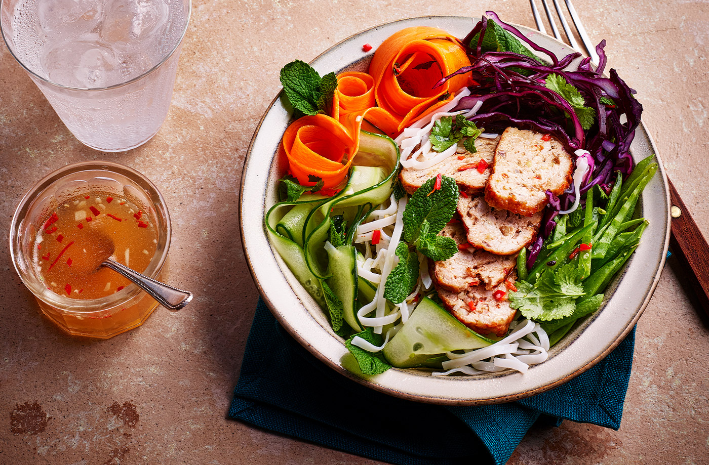This fast and fresh noodle salad is bursting with Thai-style flavours, with fiery chilli, zingy lime, aromatic fresh herbs and a touch of sweetness. We've added in some leftover spicy turkey burgers, which you can re-heat in your air-fryer. Teamed with flat rice noodles, this is a speedy and satisfying meal for any night of the week!