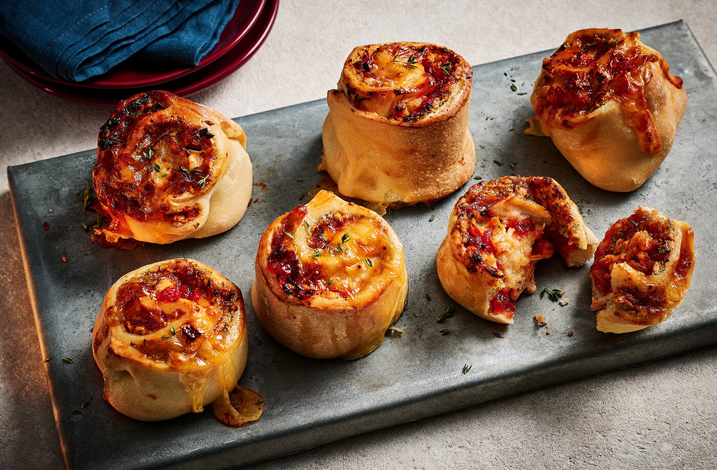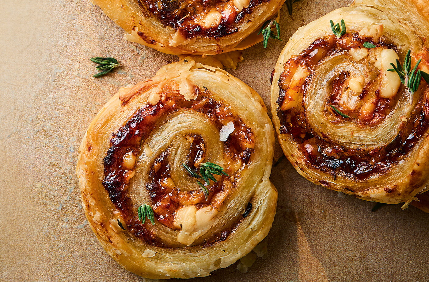 These moreish little pinwheels are packed with bold flavours, inspired by a classic British sandwich. Fun to serve at parties or as tasty savoury snack, you can make-and-freeze ahead – if you can wait that long to eat them!