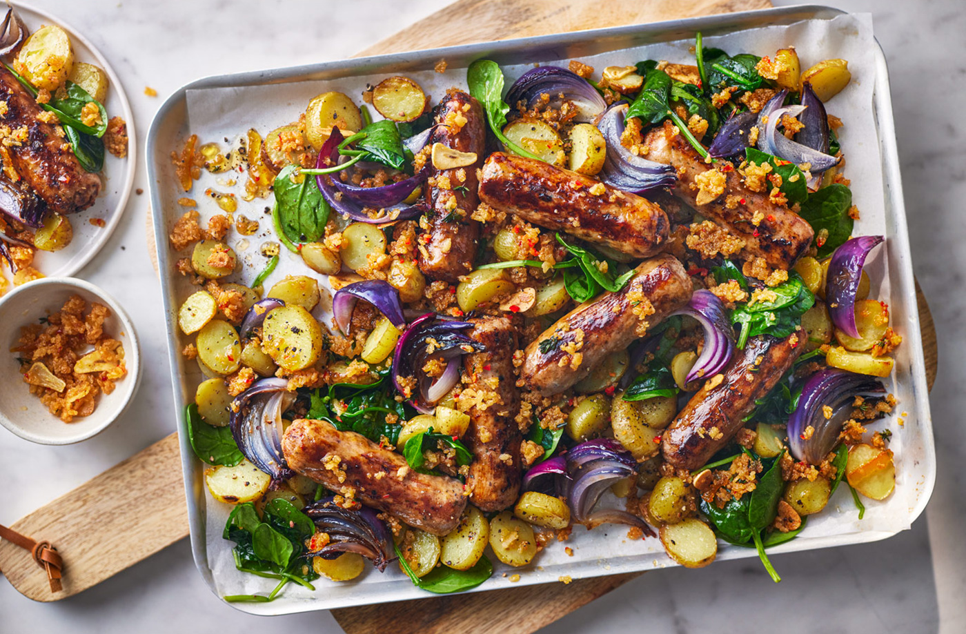 An all in one sausage traybake is exactly what you need for those busy weeks. The secret here is marmalade... Used to glaze the sausages and also to create a fun ‘marmalade on toast’-style topping. Give it a go!